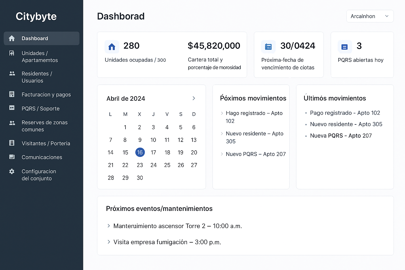 conjuntos residenciales, edificios y apartamentos, centralizando toda la gestión, comunicación y control en un solo lugar.